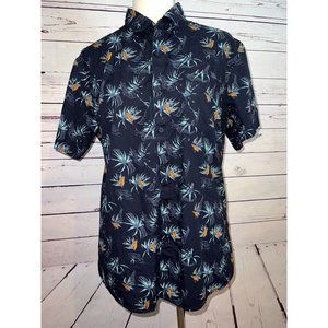 Molokai Surf Co Short Sleeve Button Front Shirt Black Large Hawaiian Tropical