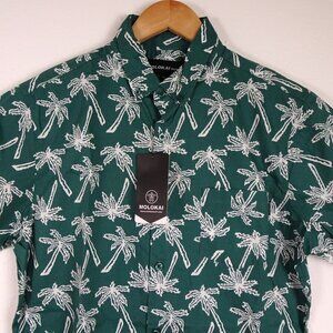 Molokai Surf Short Sleeve Shirt Men's Size M Green Palm Trees Button Front