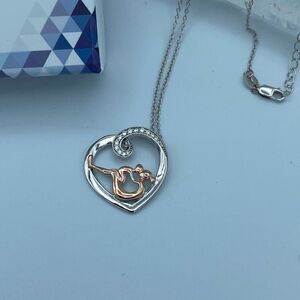 Mom And Child Sterling Silver Rose Gold CZ Necklace