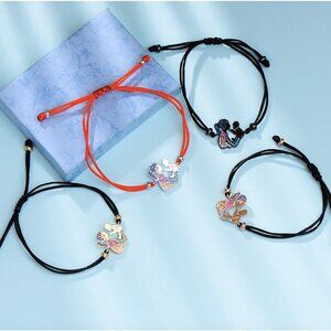 Mom and Baby Newborn Motherhood Silver CZ Red Cord Adjustable Bracelet