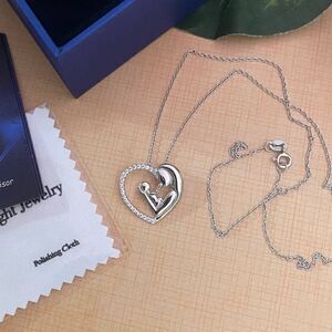 -Featuring Mother and Child holding in Heart Sterling Silver pendant necklace.