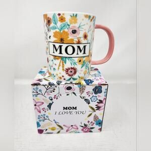 Mom Coffee Cup Ceramic Gift Mother's Day Birthday Floral Gift New in Box. Appr 3.5 inches in diameter x 4 inches deep. New in box.v