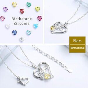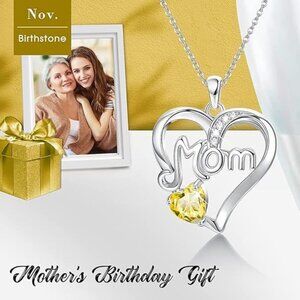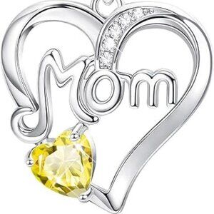 Mom Heart Pendant Necklace, Birthstone Yellow Crystal, November Birthstone