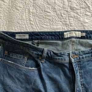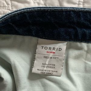 Straight leg jeans with slight ripping from torrid. Never worn, just took the tags off. Has cute fringe detail around the ankles.