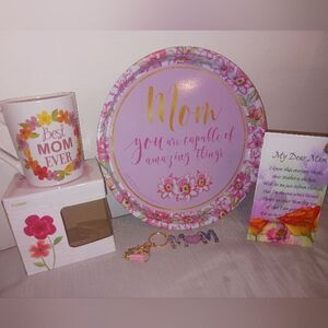 MOTHERS DAY BUNDLE LOT - comes with Mom Coffee Mug- Plate for Mom- Mom Decor Frame - MOM Keychain...