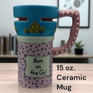 Multi-colored Graphic Mom's Taxi Service, Mom On The Go Ceramic Travel mug.