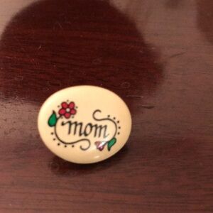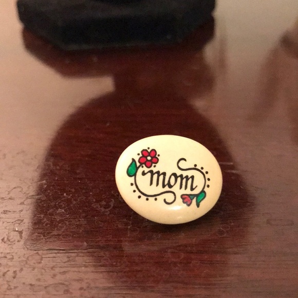 Mom Pin. Possibly made out of wood. Appears to be hand painted. Perfect gift!