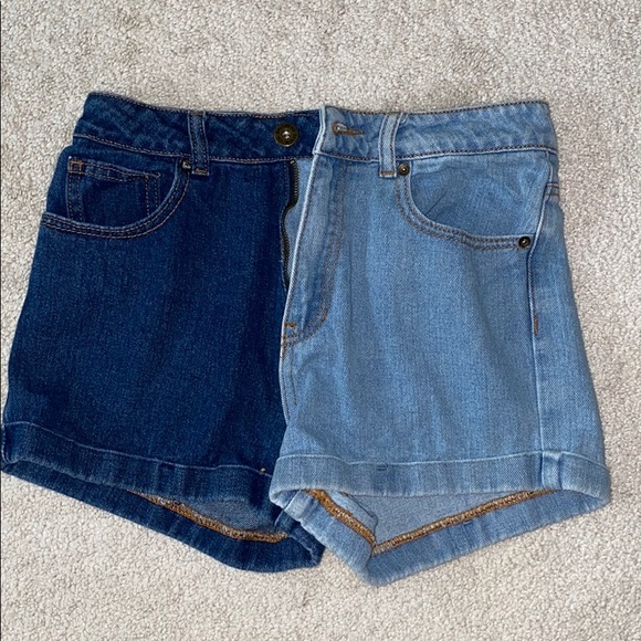 Two tone denim mom shorts