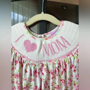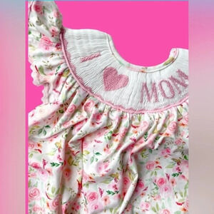Mom Smocked Dress Toddler Girl embroidered floral Mother’s Day bishop roses