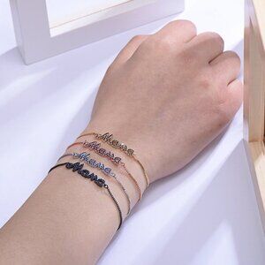 Mom To Be Boy Mama Blue Letters Silver Bracelet