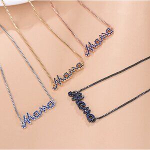 Mama Loving Mother Family Blue Cubic Zirconia Silver Adjustable Bracelet
