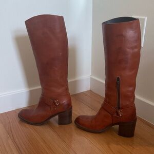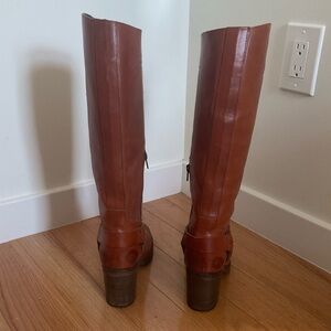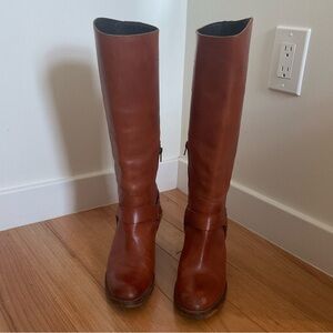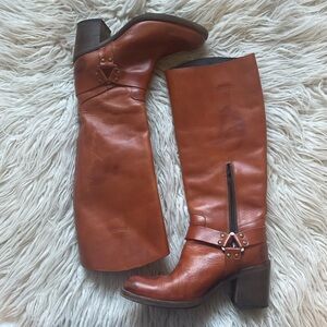 Moma Brown Leather Knee High Harness Round Toe Heeled Riding Boots Size 37