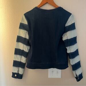 Moma Cropped Striped Jean Jacket Round Neck Women's Size Medium