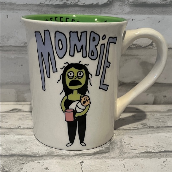 Quirky Mombie mug featuring a vibrant green interior. Perfect for adding fun to your coffee routine.