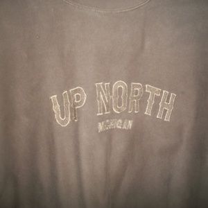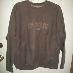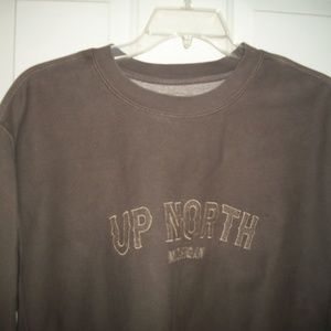 Momentum Performance Outfitters, brown, cotton, Up North Michigan sweatshirt size M/L, with embroidered lettering, chest measurement is 27" from armpit to armpit, length 28"