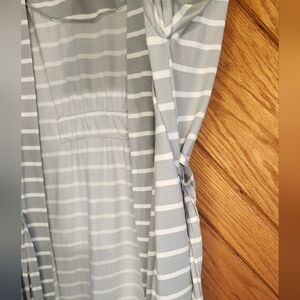 Mommy And Me Matching Gray and White Striped Nursing Robe And Baby Hat S/M.