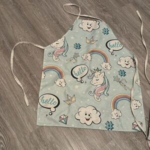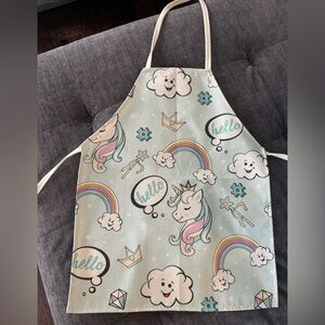 Adorable mom and kids apron featuring a playful unicorn and rainbow design. Perfect for creative activities. Durable and easy to clean. Small apron fits 4-8 year old and measures 19” long X 15” wide. Adult apron fits any adult.