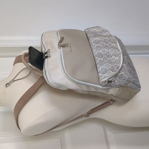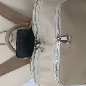 Large Travel Shoulder Bag with Cell Pocket. Cream/Tan.