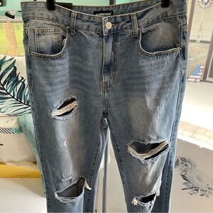 Momokrom Blue Light Was Crop Straight Leg Distressed Crop Jeans Size 12