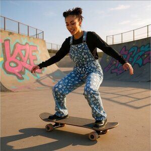 Momokrom Painted Leopard Denim Overalls W/ Adjustable Straps – M/8 NWT