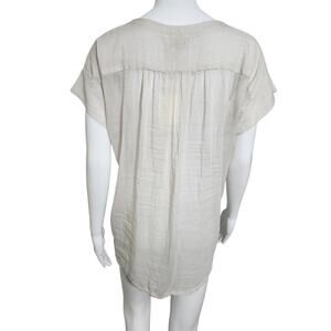 Momoni Medium Peasant Cotton Silk Sheer Lagenlook Blouse Beige Hi Low Hem Top