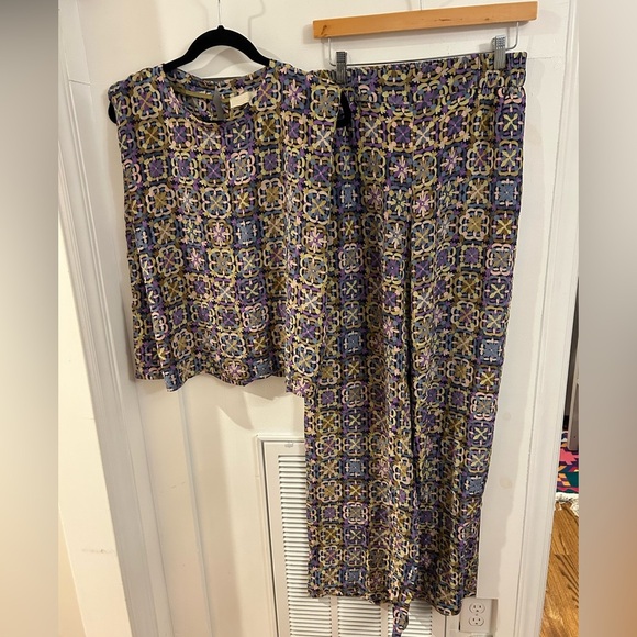 Elastic waist wide leg pants with the matching sleeveless blouse