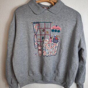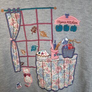 "Mom's Kitchen" Vintage Grey Crewneck Sweater Womens P-Large Country Grandmacore