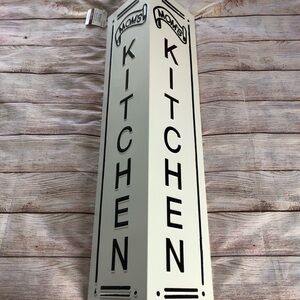 Decorate your kitchen with this black and white "Mom's Kitchen" wall hanging. This decoration will add a touch of farmhouse charm to your space.