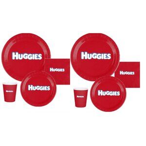 This diaper party set includes everything you need to celebrate the arrival of your little one. The set comes with 15 9-inch plates, 15 7-inch plates, 15 napkins, and 15 cups. The plates are red and feature a diaper party design. This set is perfect for a baby shower or a diaper party.