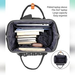 Super cute well made Momuvo Backpack. gray in color will white arrow designs. Never used. bought the Backpack and I wasn't what I was looking for. Backpack is 17.3" tall.