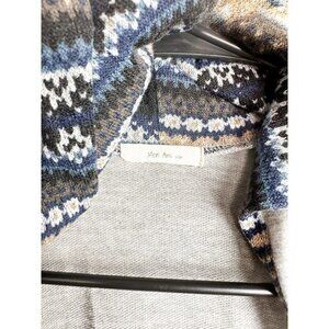 Mon Ami Contrast Sleeve Draped Front Cardigan Small Gray Blue Printed Hooded