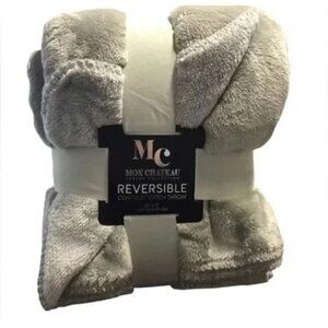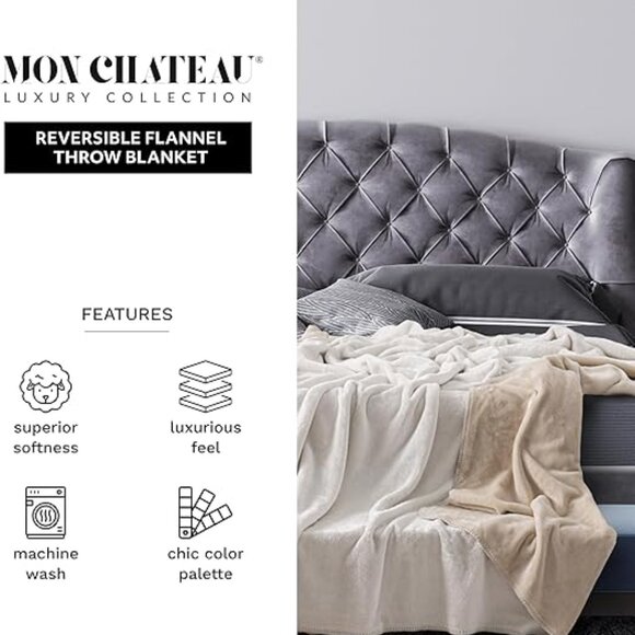Mon Chateau Luxury Over-Sized Ultra Soft Reversible Flannel Throw, Tan, NWT