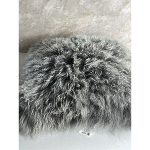 Mon Chateau Tibetan Lamb Fur Square Pillow Silver Gray 17" 95% Feather 5% Down
