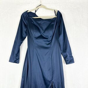 Mon Cheri Colette Off The Shoulder Long Sleeve Dress Size 14 NEW Navy Stretch