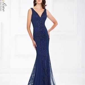 Mon Cheri Montage 118975 Evening Dress Gown Formal Navy Long Size 4 MSRP $650
