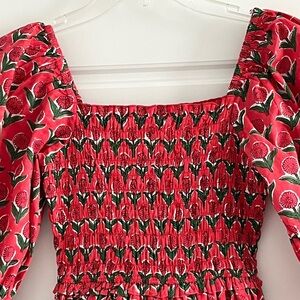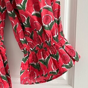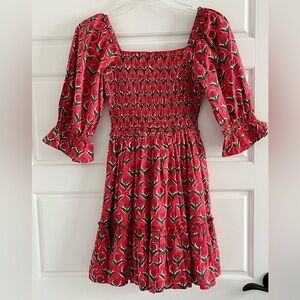Mon Coco 100% Cotton Smocked Floral Mini dress with Puffed Sleeves Extra Small