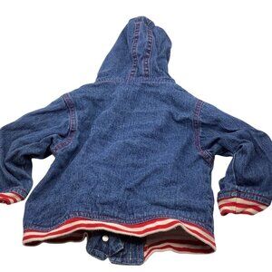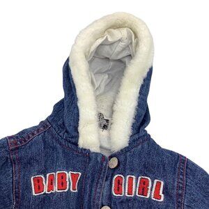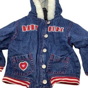Mon Petit Baby Girl Size 24M Denim Jacket With Faux Fur Hood & Heart Patch