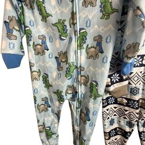 Mon Petit Toddler Two Blanket Sleepers Footies Dinosaur& Raccoon/Fox Pajamas