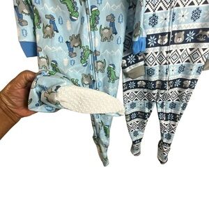 Mon Petit Toddler Two Blanket Sleepers Footies Dinosaur& Raccoon/Fox Pajamas Cozy and fun one-piece pajamas featuring playful dinosaur and raccoon/Fox designs. Perfect for keeping your little one warm and stylish. Available in blue and gray colors. Long sleeve, zip front, non-skid footies, Nwot