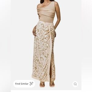 Skirt is brand new and in the poly plastic bag - Show off just the right amount of skin in this beautifuly designed midi length skirt. Handcrafted print skirt features an asymmetric waist shape and a waistband with folded band. Contrast banding at all edges and front leg split add unique details, while the invisible side zipper and full lining provide practicality. 58% VISCOSE 42% RAYON. Designed in Australia. MODEL MEASUREMENTS -