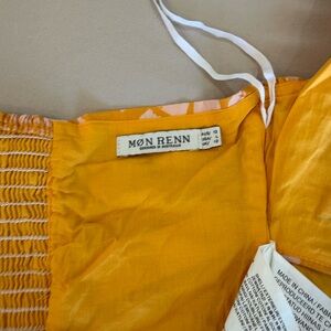 Brighten your wardrobe with this stylish yellow patterned top. Perfect for any occasion, it offers a vibrant look and comfortable fit. Cotton poplin crop top with a halter back design and adjustable tie. Very similar go Anthropologie or Free People vibe.