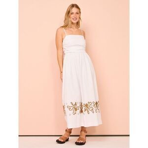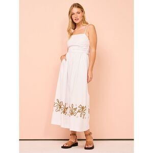Mon Renn Mystique Midi Dress in White with Beige -VACATION size S NWT$259