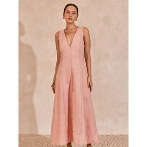 Mon Renn Women's Light Pink Kahlo Linen Blend Sleeveless Midi Dress NWT Size M