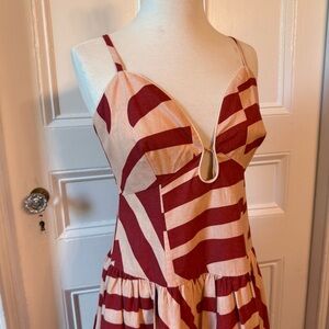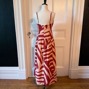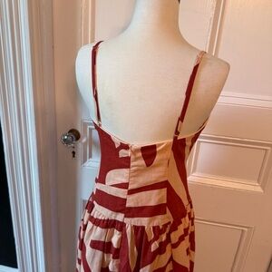 Mon Renn Women’s Surreal Midi Dress Tropicco Print Rust Cream Size S/8 Cotton