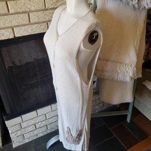 Mon Tricot vintage Boho sleeveless knit Tunic Cardigan Sweater/swim cover O/S