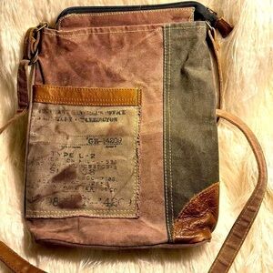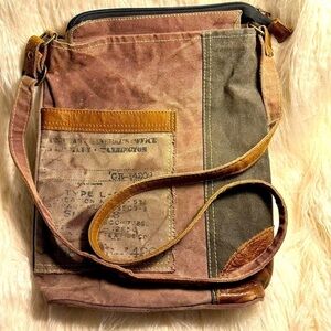 Mona B Distressed Canvas Leather Trim Bag Purse Crossbody Shoulder Bag Brown
