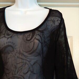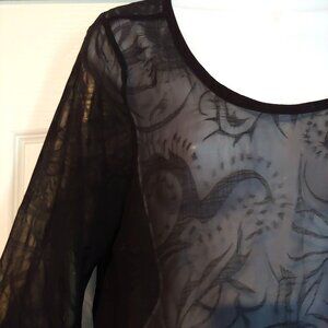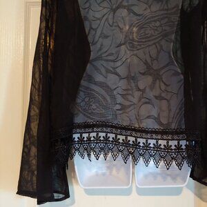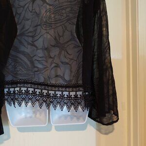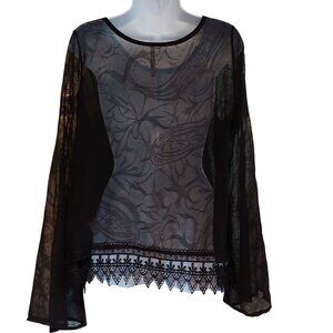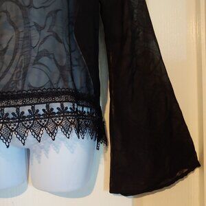 Mona B Smoky Black Sheer Witchy Whimsygoth Grunge Rocker Metal Top Lace L