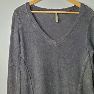 Mona B. V-Neck V-Hem Grunge Top Charcoal XS