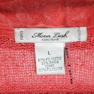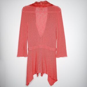 Mona Leah Couture Open Knit Cardigan Size Large Coral Pink Tie Waist Long Sleeve