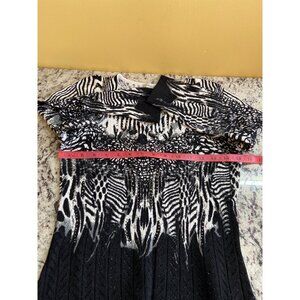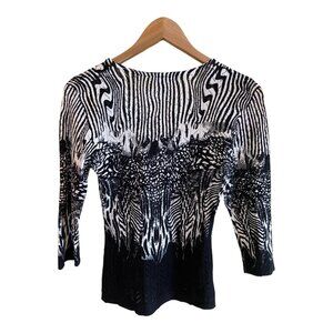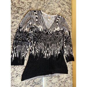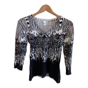 Mona Leah Couture Womens Sweater Small Black White Zebra 3/4 Sleeve VNeck Career